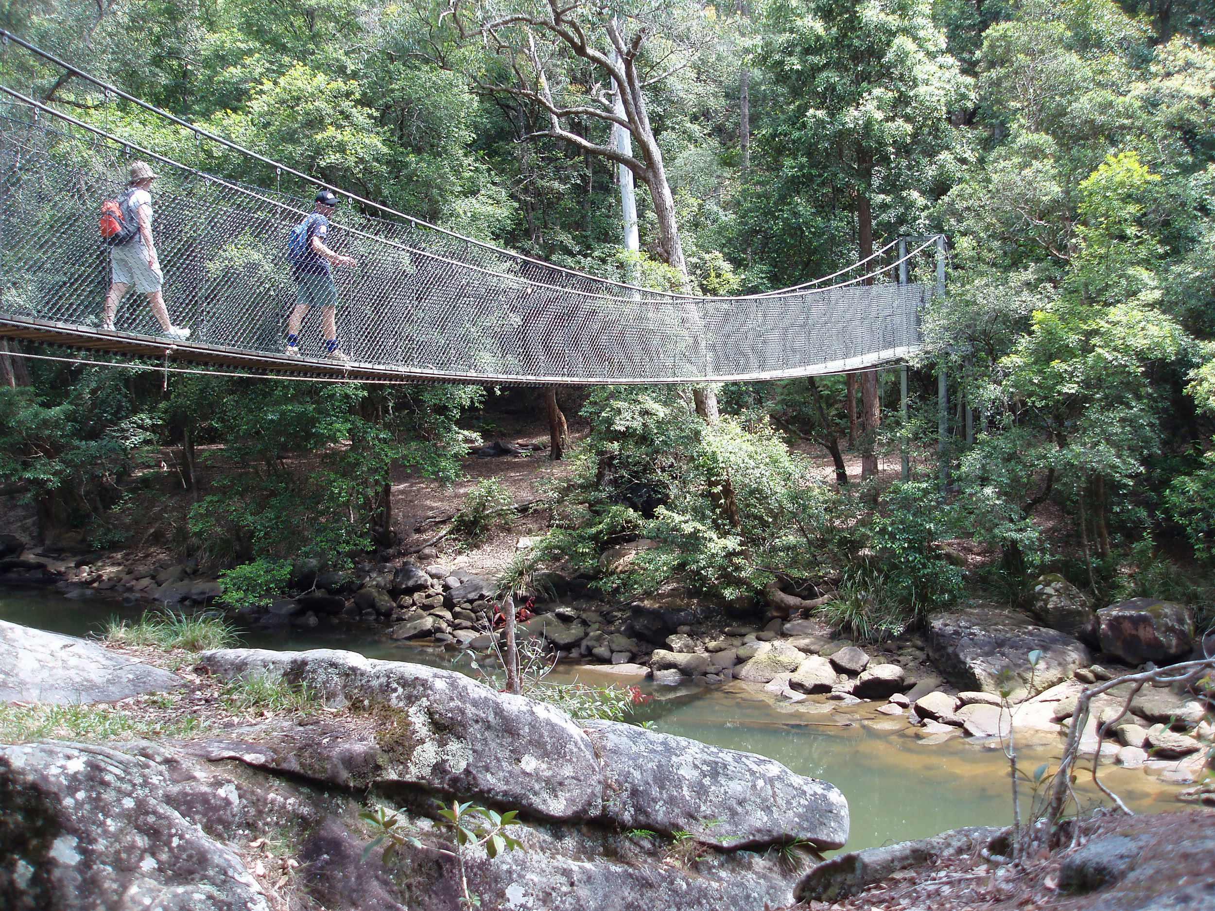 | 2500x1875 (2330kB) Image Keyword Tags: people environment wilderness exercise river activity fitness trail bridge hike hiking footpath suspension spanning hikers |